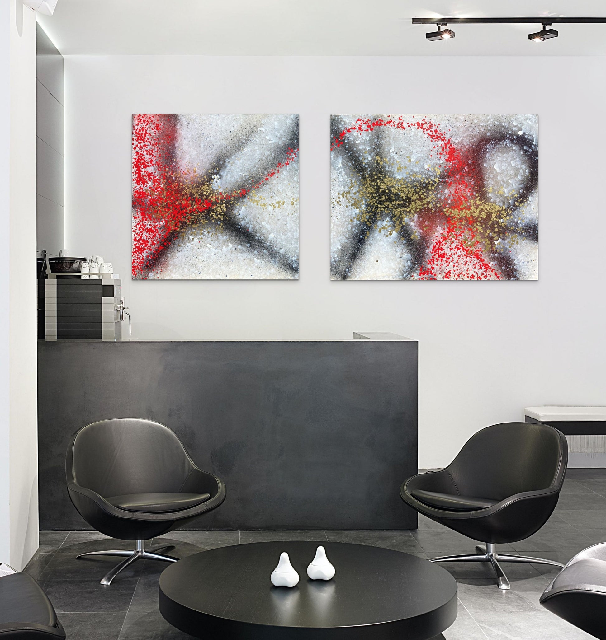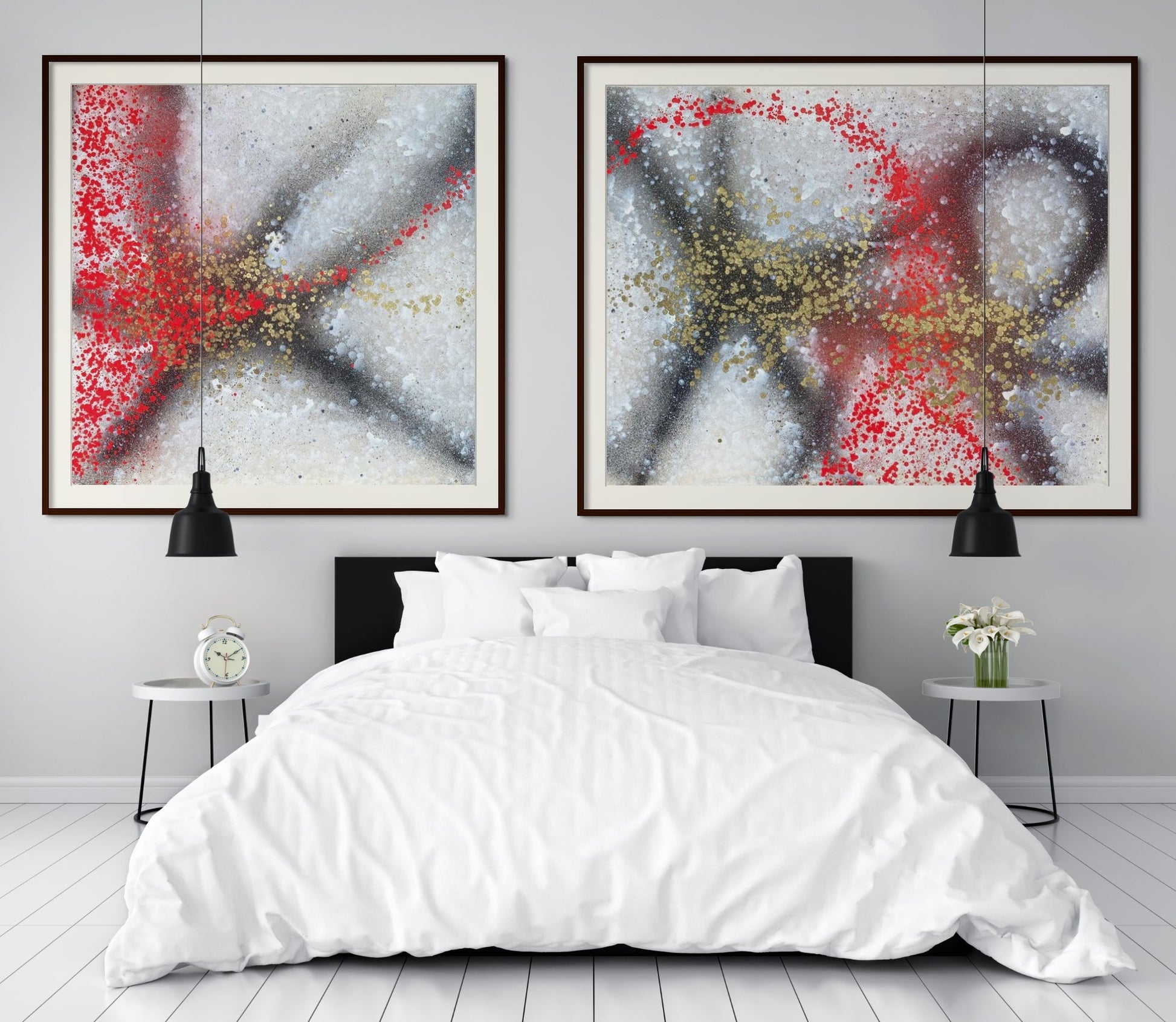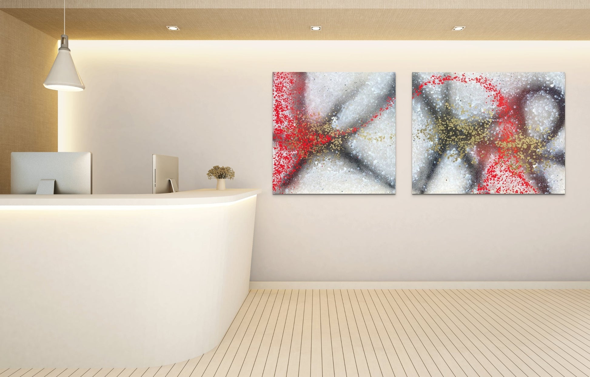 Allele Help From My Friends is a work containing two pieces; one is 48" by 48" and the other is 48" by 60". This work is made by Jason Hatchell, created with spray paint and acrylic on canvas. Frame is not included.