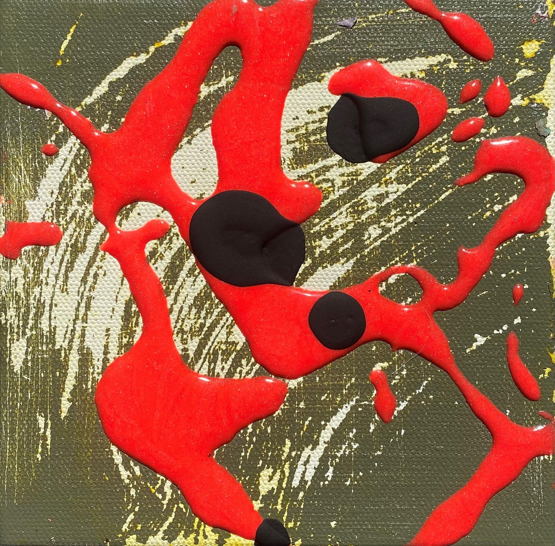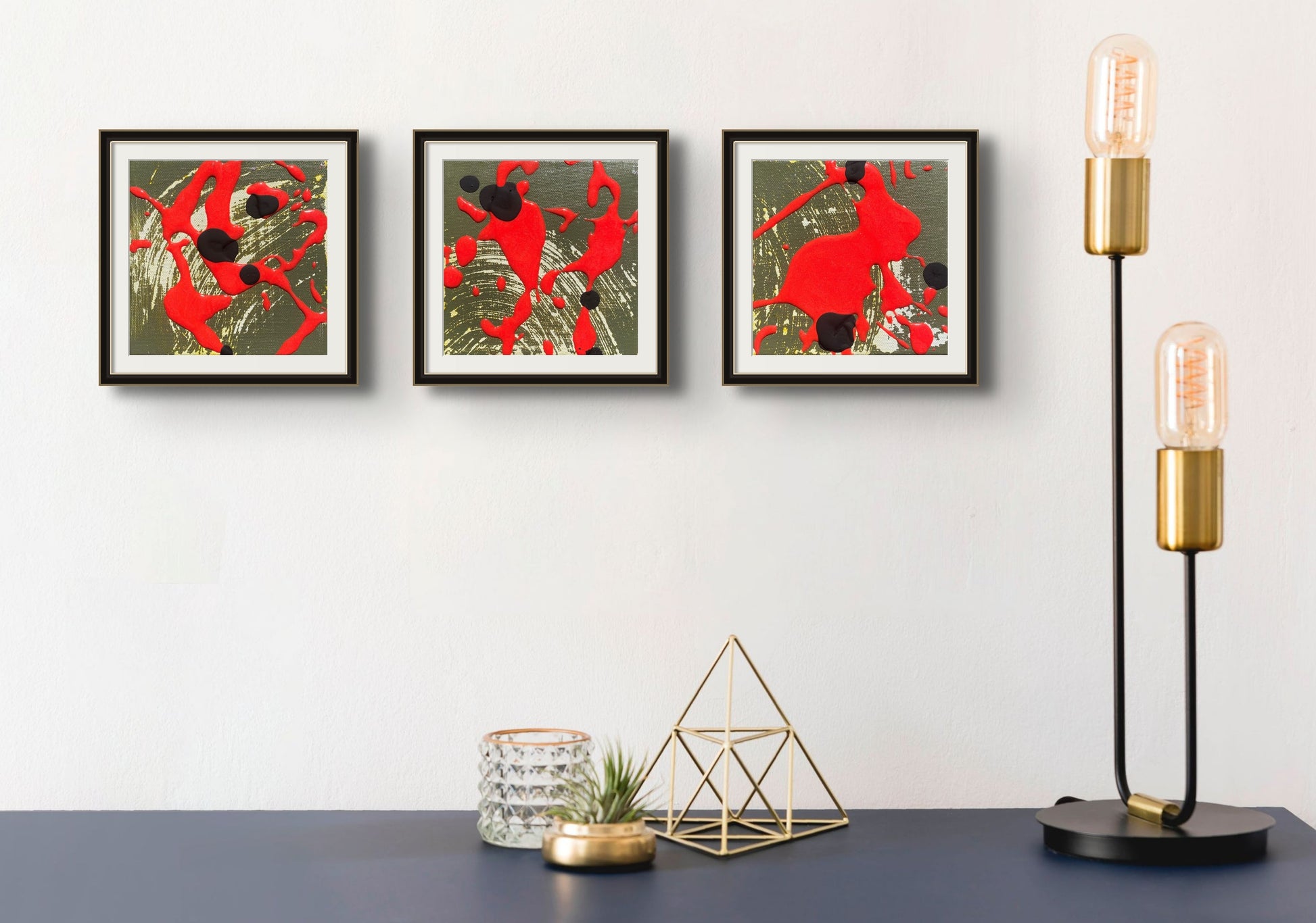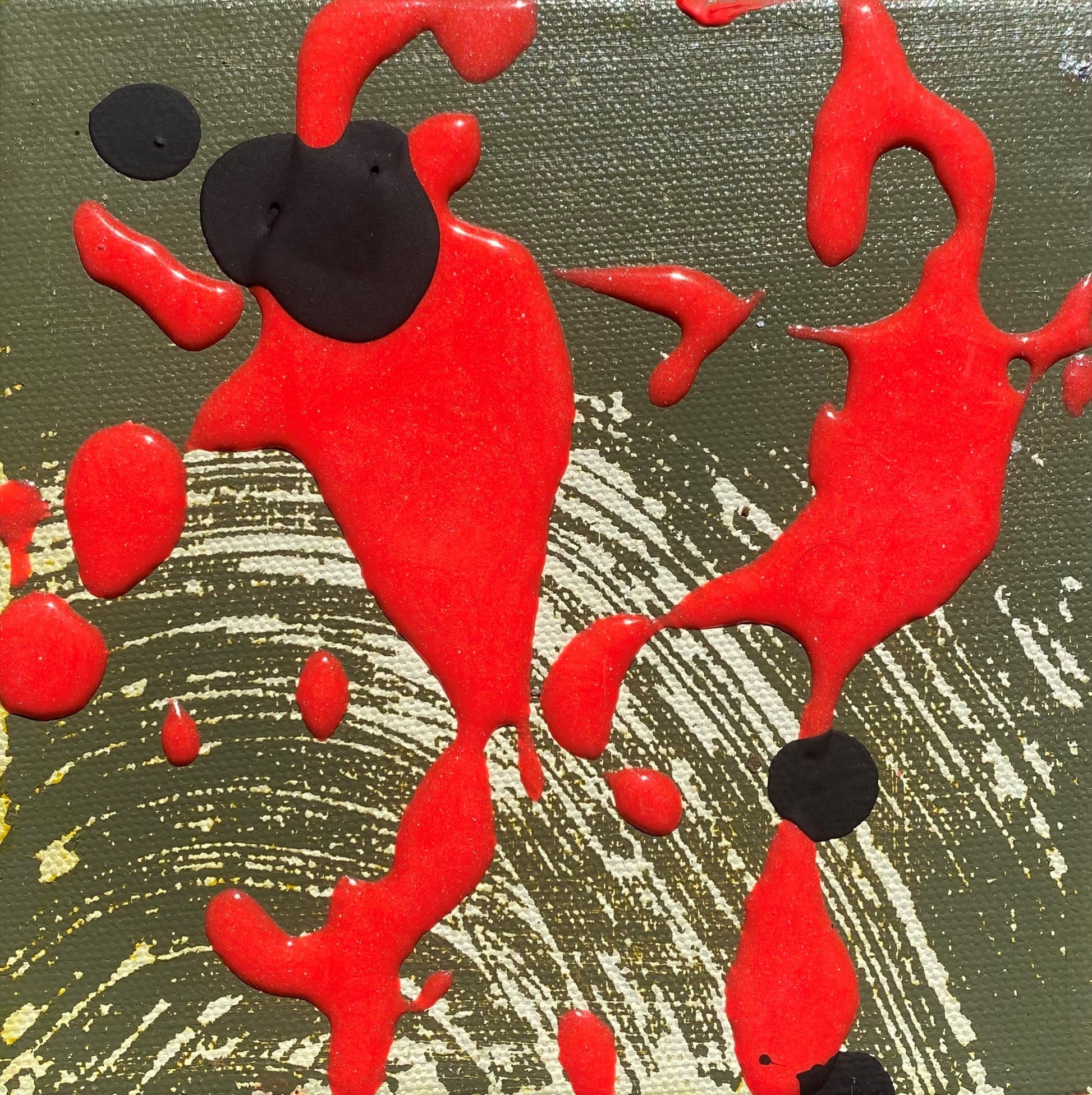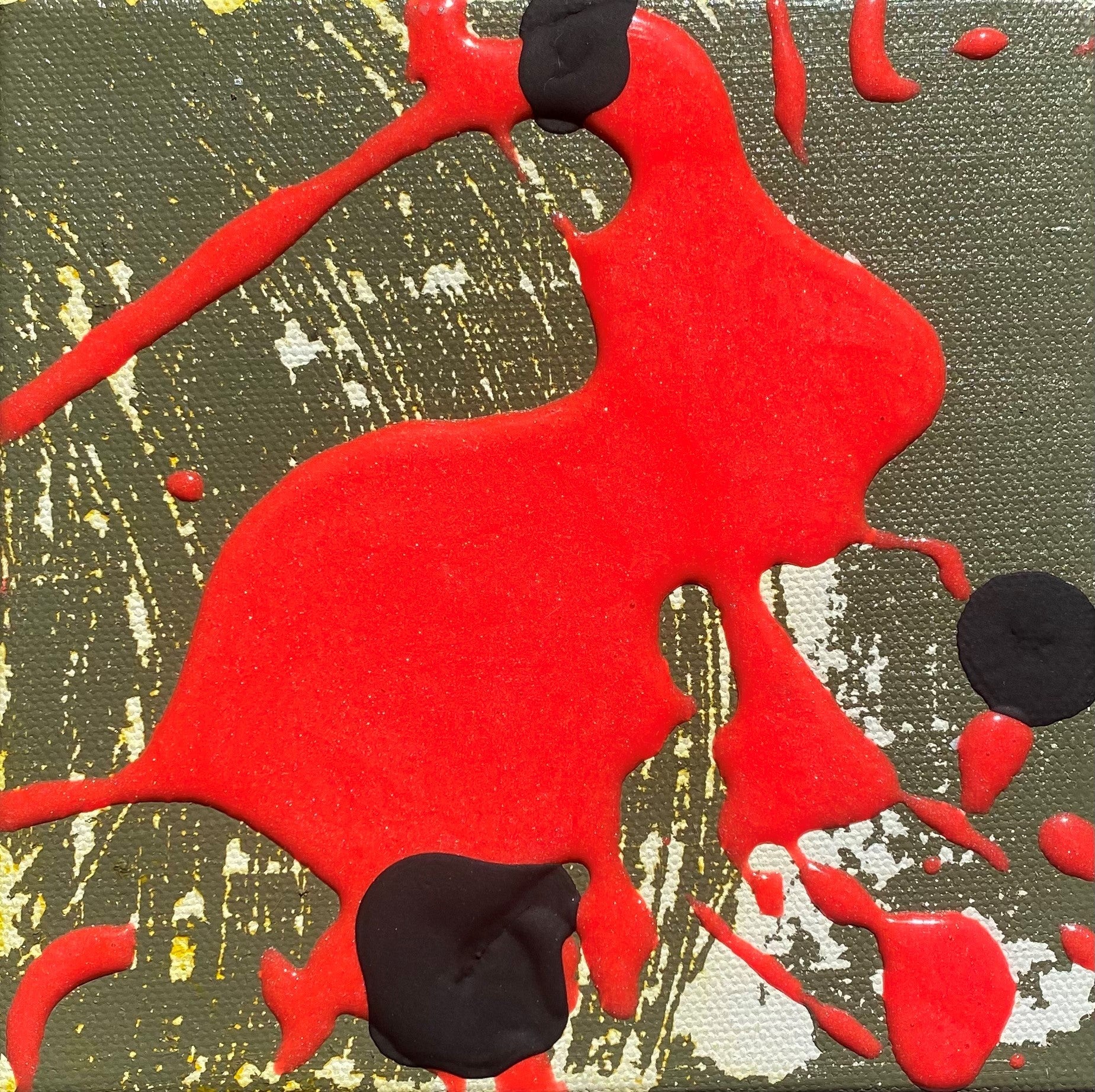 God Save The Queen is a work of 3, 6" x 6" pieces made by Jason Hatchell, created with spray paint, acrylic and resin on canvas. Frame is not included.