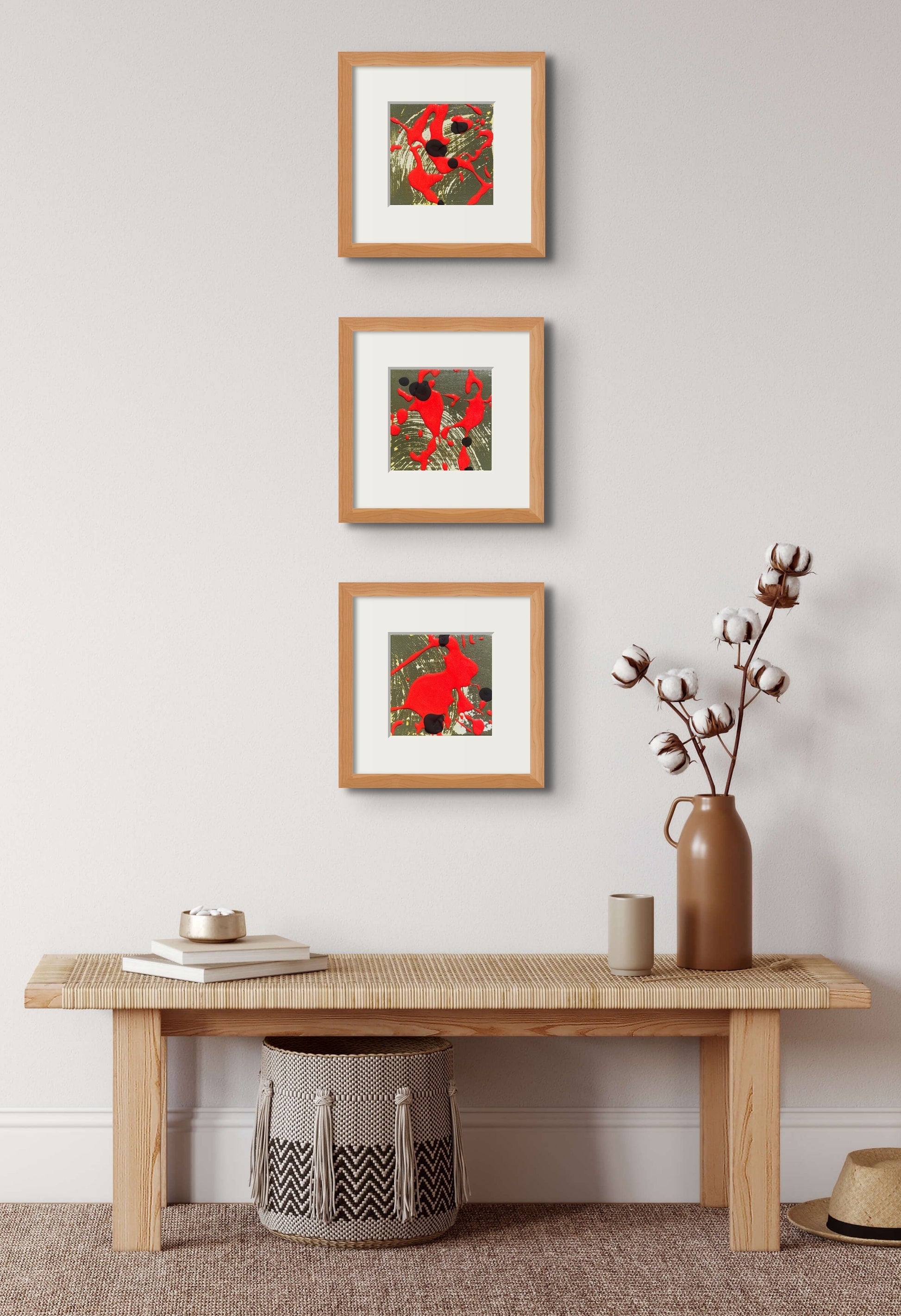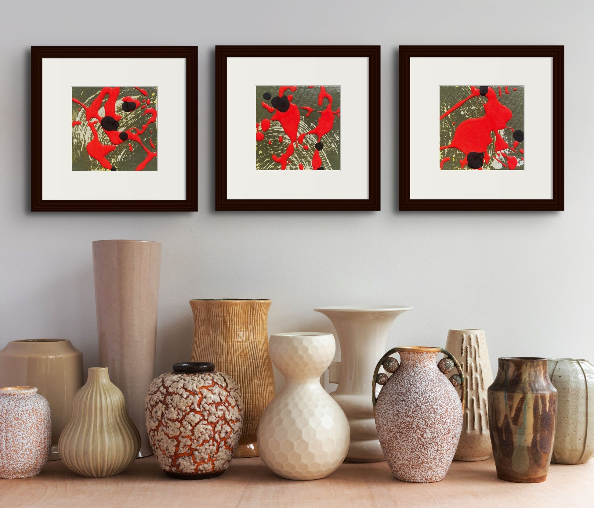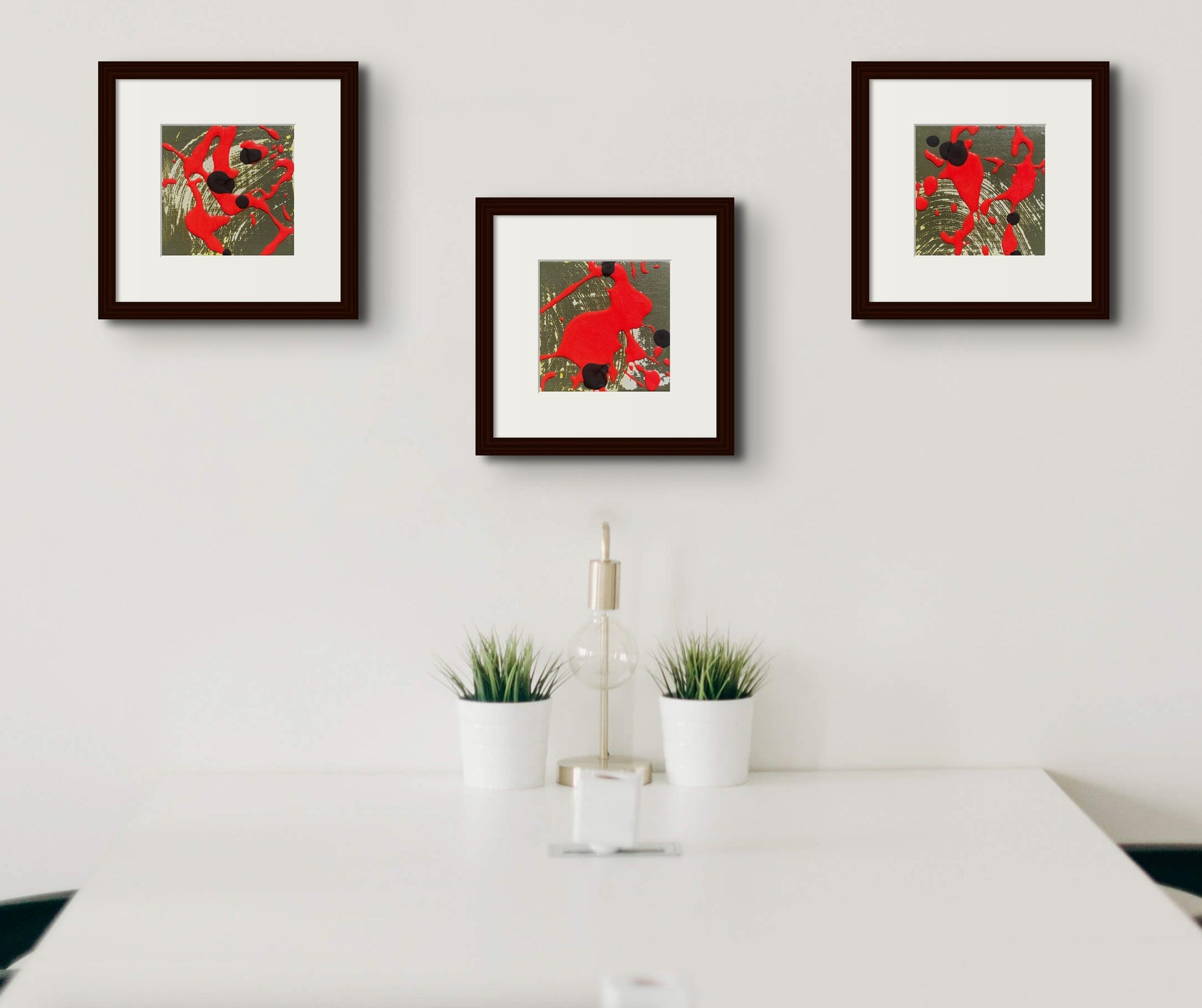 God Save The Queen is a work of 3, 6" x 6" pieces made by Jason Hatchell, created with spray paint, acrylic and resin on canvas. Frame is not included.
