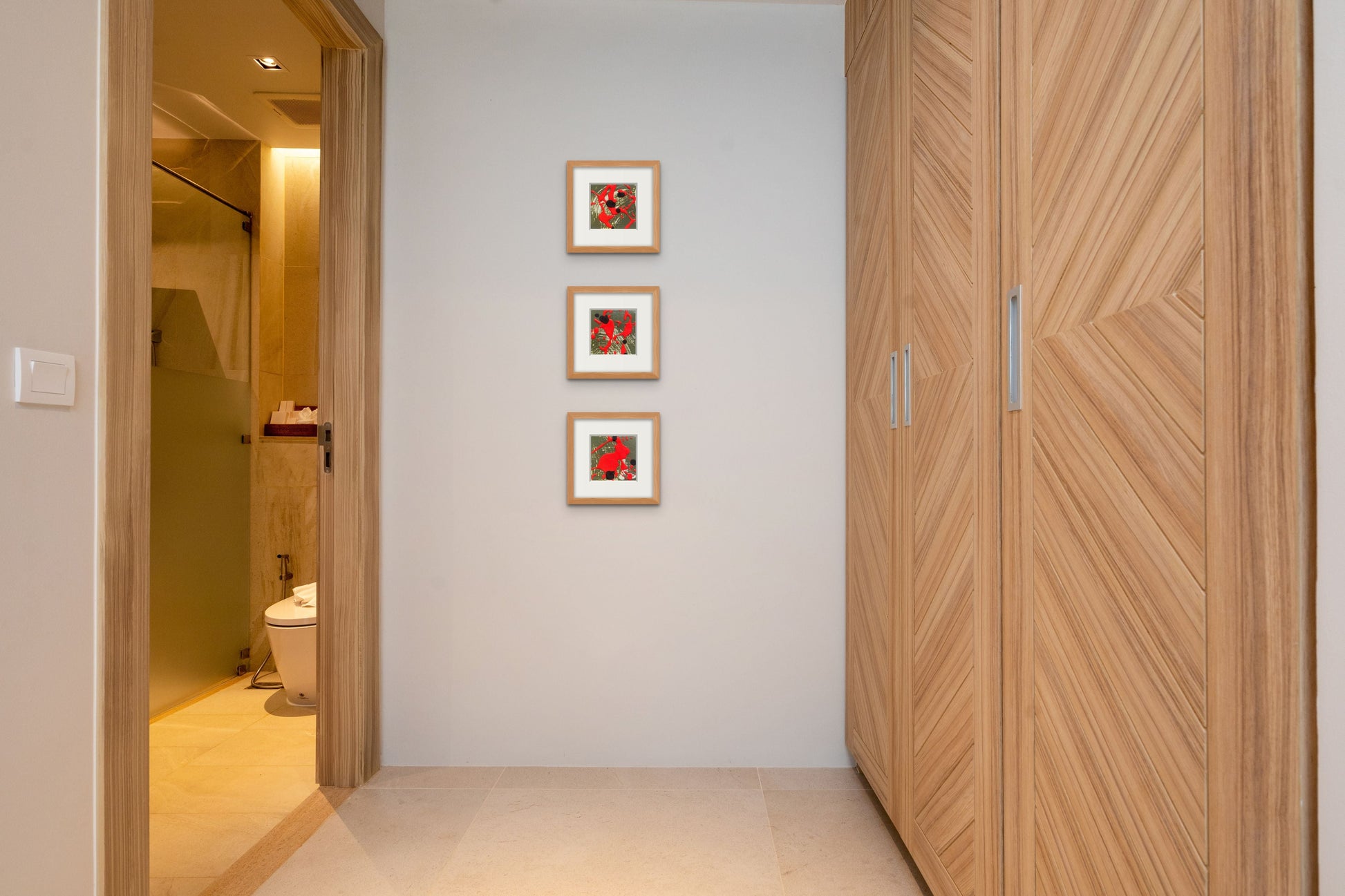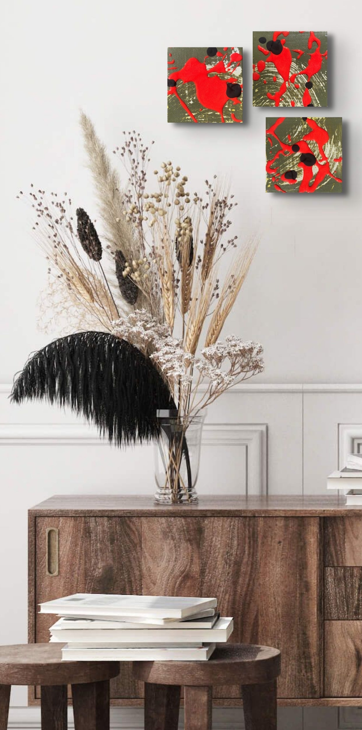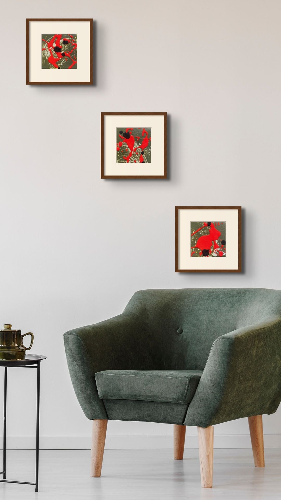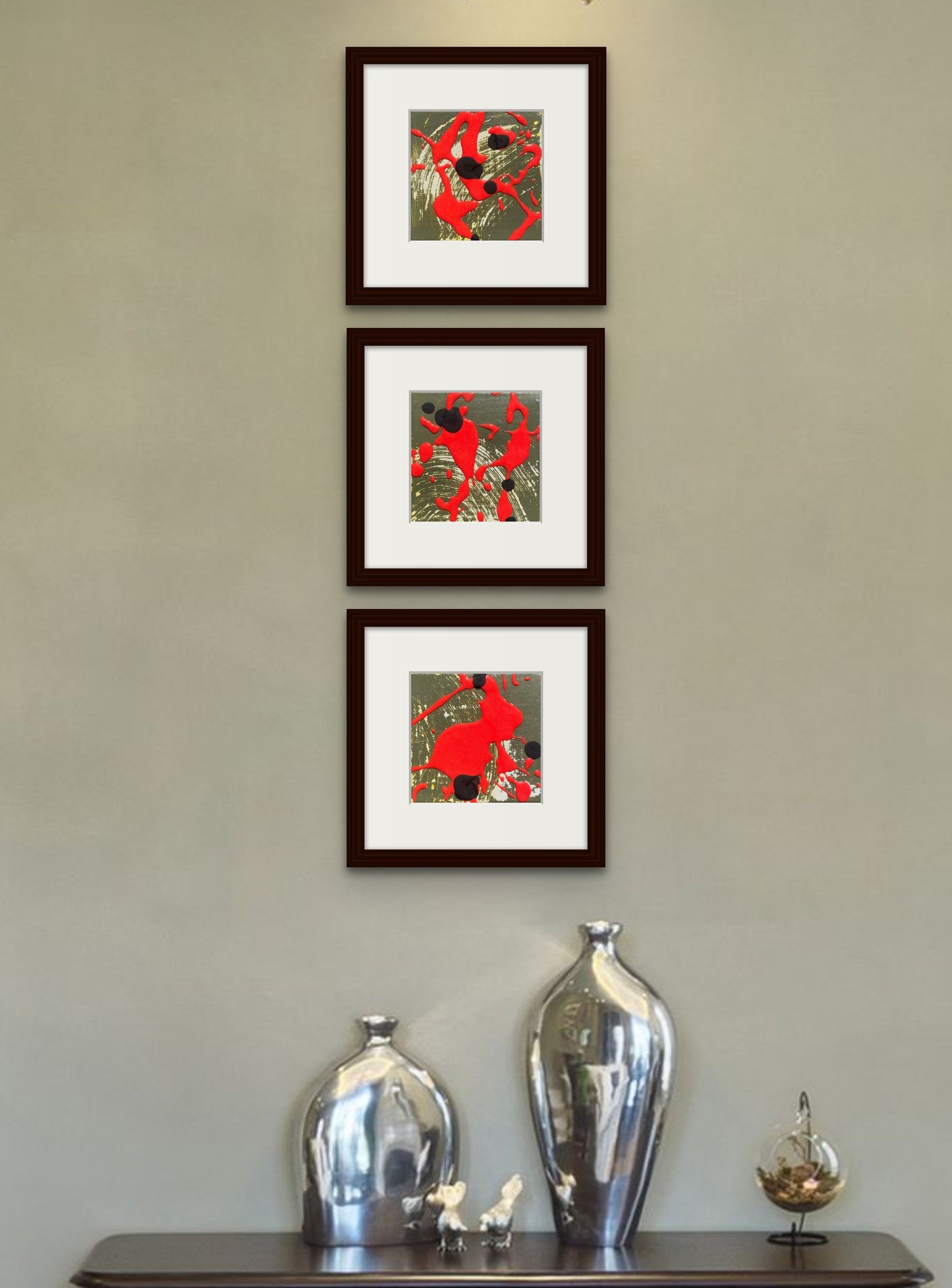 God Save The Queen is a work of 3, 6" x 6" pieces made by Jason Hatchell, created with spray paint, acrylic and resin on canvas. Frame is not included.